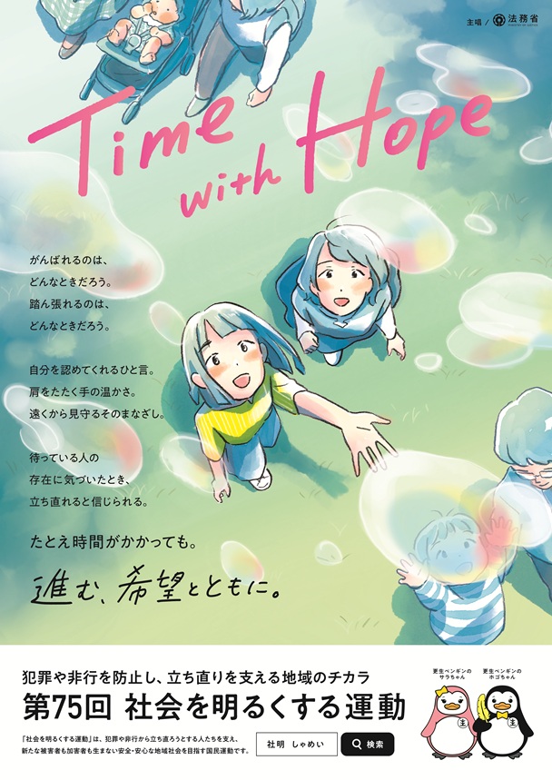 法務省主唱”社会を明るくする運動”の75回目となる今年のキャッチフレーズは「Time with Hopeー進む、希望とともに。」です。
