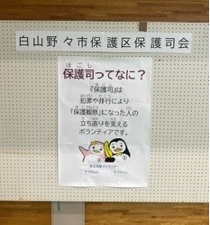 白山野々市保護区保護司会 石川県白山市古城町2番地 松任文化会館2階 |